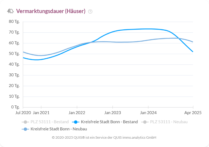 - Im April 2025 lag sie bei 51,7 Tagen für Bestandshäuser, nachdem sie Anfang 2024 noch 73,2 Tage betrug.