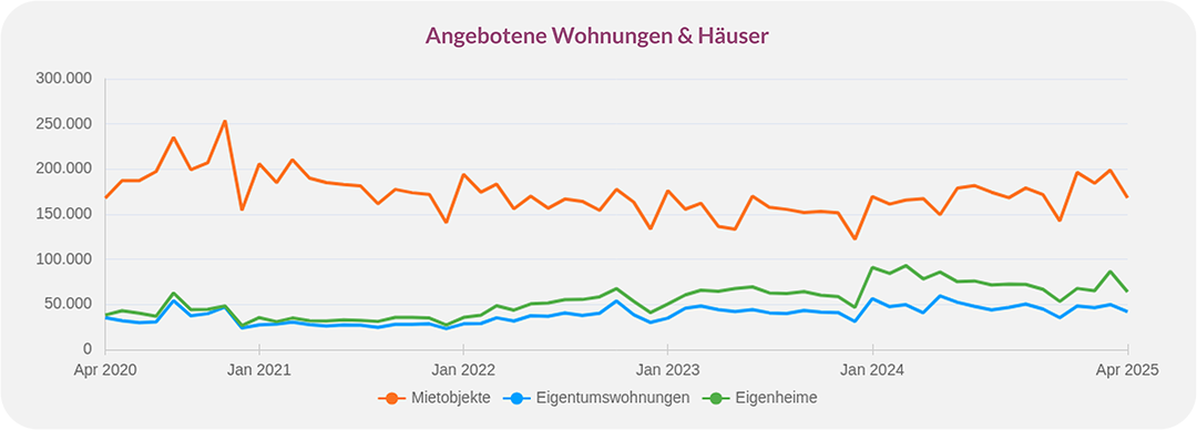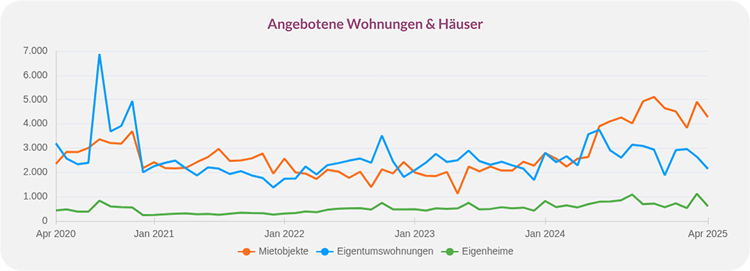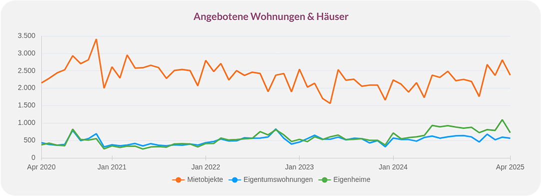 Wohnungsmarktreport Mai 2025: Mehr Mietangebote, weniger Kaufobjekte – Preise im Wandel