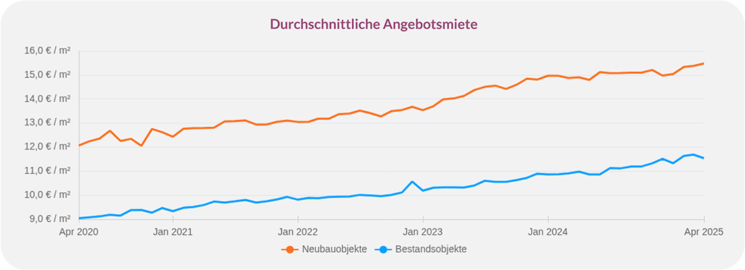 Die Angebotsmieten stiegen im Jahresvergleich leicht: