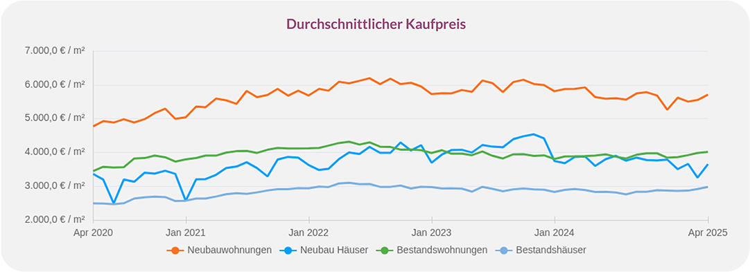 - Neubauhäuser: 3.651 €/m² (-5,9 %)