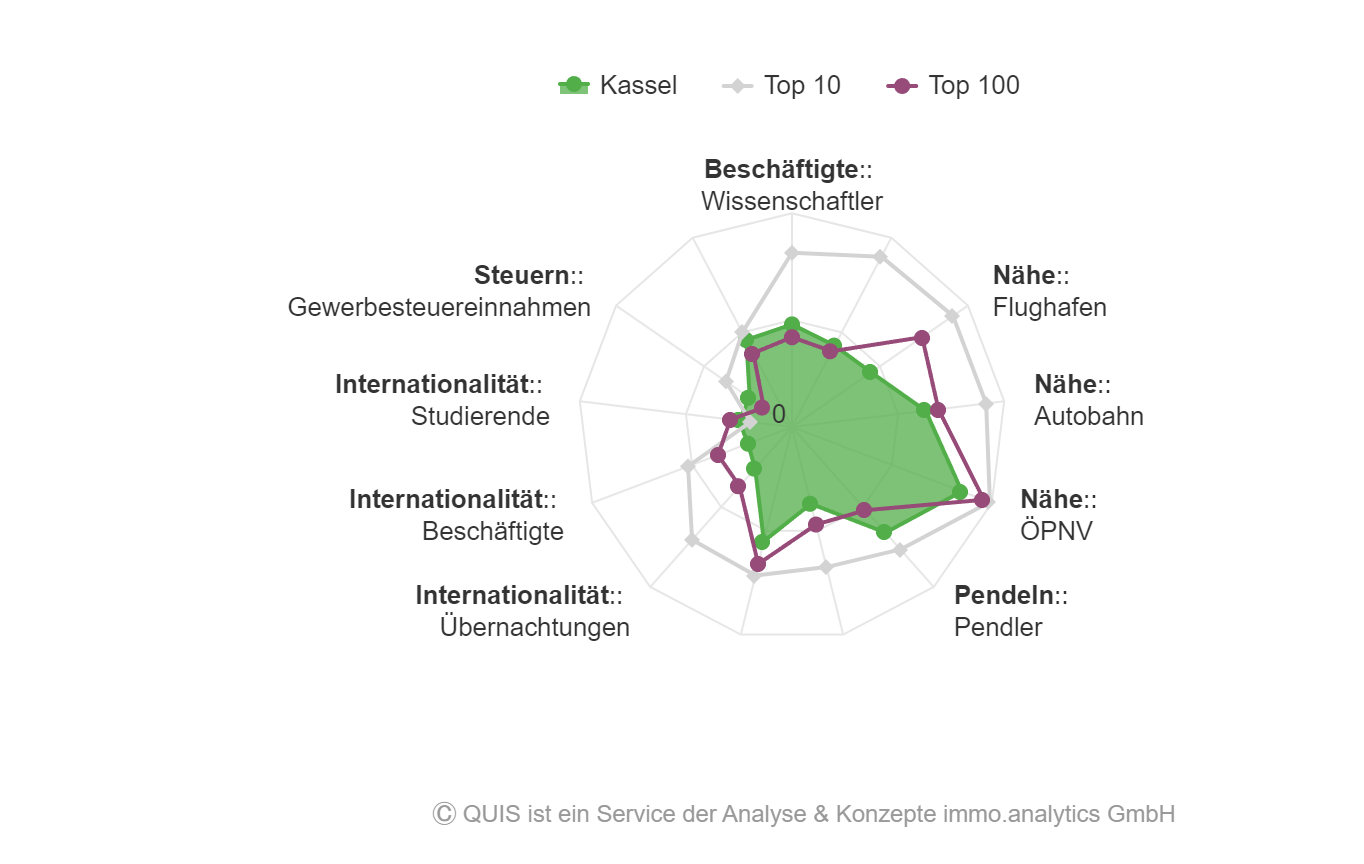 „QUIS stellt vor allem das regionale Leistungs- und Innovationspotenzial der Arbeitskräfte in den Vordergrund. Ein Fokus liegt dabei auf Diversität wie Alter, Bildung und Internationalität“, sagt Bettina Harms. Die ermittelte Rangliste basiert auf einem Bewertungssystem, das insgesamt 13 Indikatoren untersucht, darunter auch Finanzkraft und Reichweite sowie Erreichbarkeit der Städte und Kreise